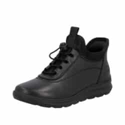 Rieker støvle til dame i sort. Disse sorte støvler er et godt valg til dig, der ønsker både komfort og stil. Overdelen er i skind, og lynlåsen på indersiden gør det nemt at tage støvlen på. Indvendigt giver den lette foring varme, mens den bløde sål sikrer behagelig støtte gennem dagen. Ydersålen er designet med stødabsorbering og et mønster, der forbedrer grebet og gør hvert skridt mere stabilt.
