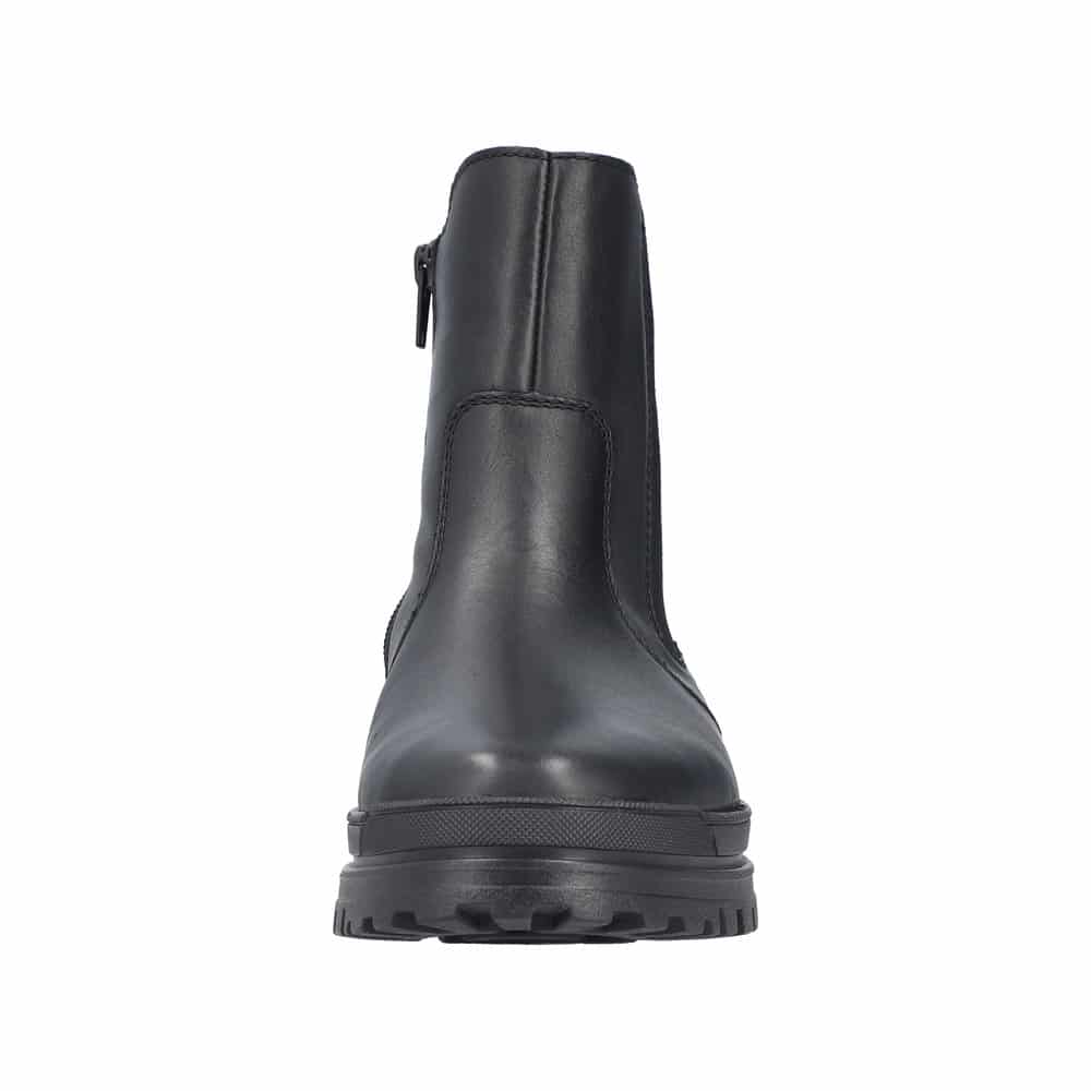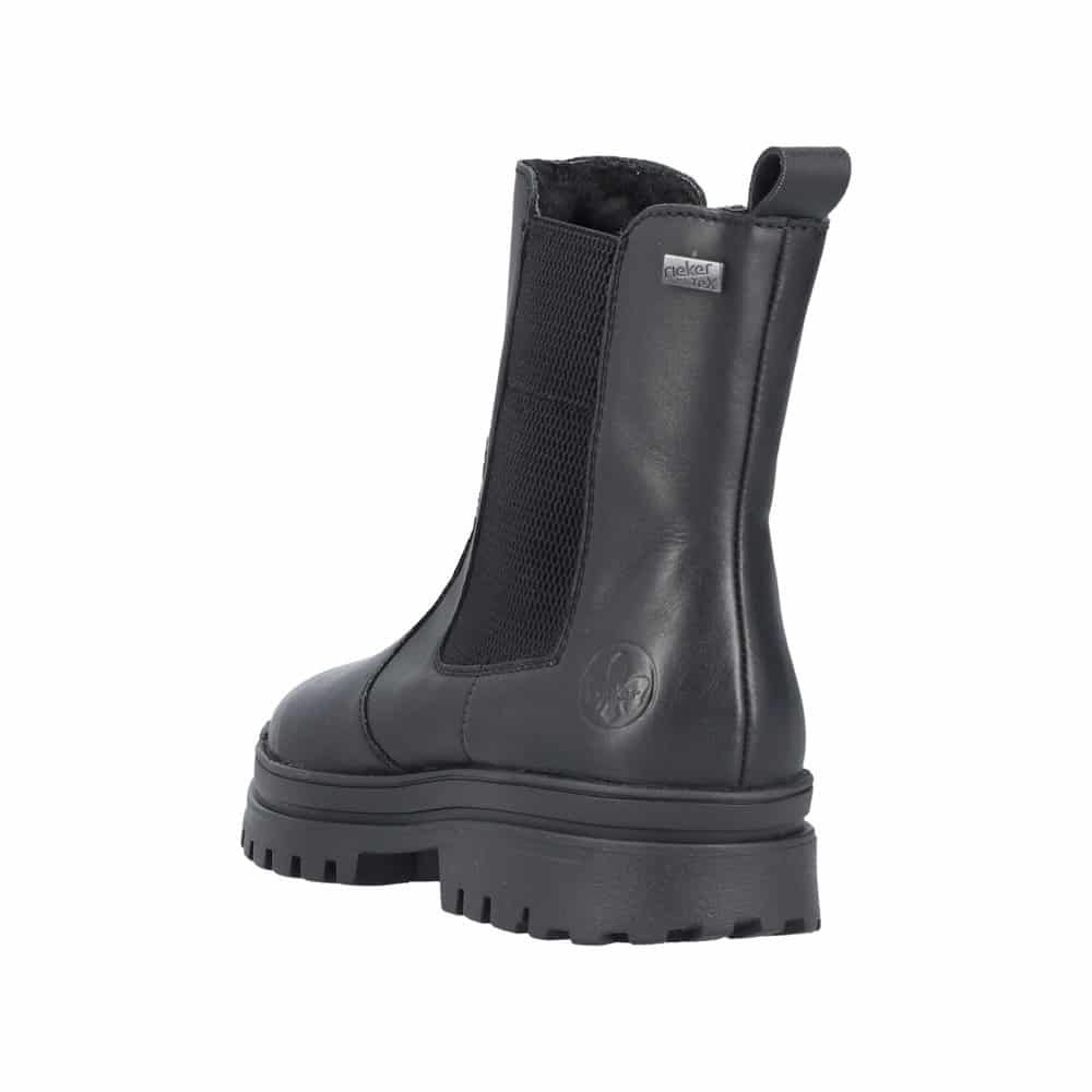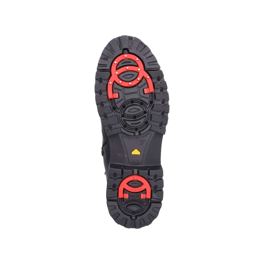 Rieker støvle til dame i sort. Elegant vinterstøvle med fokus på både komfort og funktion. Støvlen har en skindoverdel samt elastik og en praktisk lynlås, som gør den nem at tage af og på. Indvendigt er den udstyret med en varm foring og en blød sål, der giver en behagelig komfort hele dagen. Det smarte Anti-slip system med foldbare pigge øger skridsikkerheden og giver stabilitet, mens Rieker-Tex gør støvle kraftig vandafvisende. Mens den mønstrede ydersål giver øget stødabsorbering.