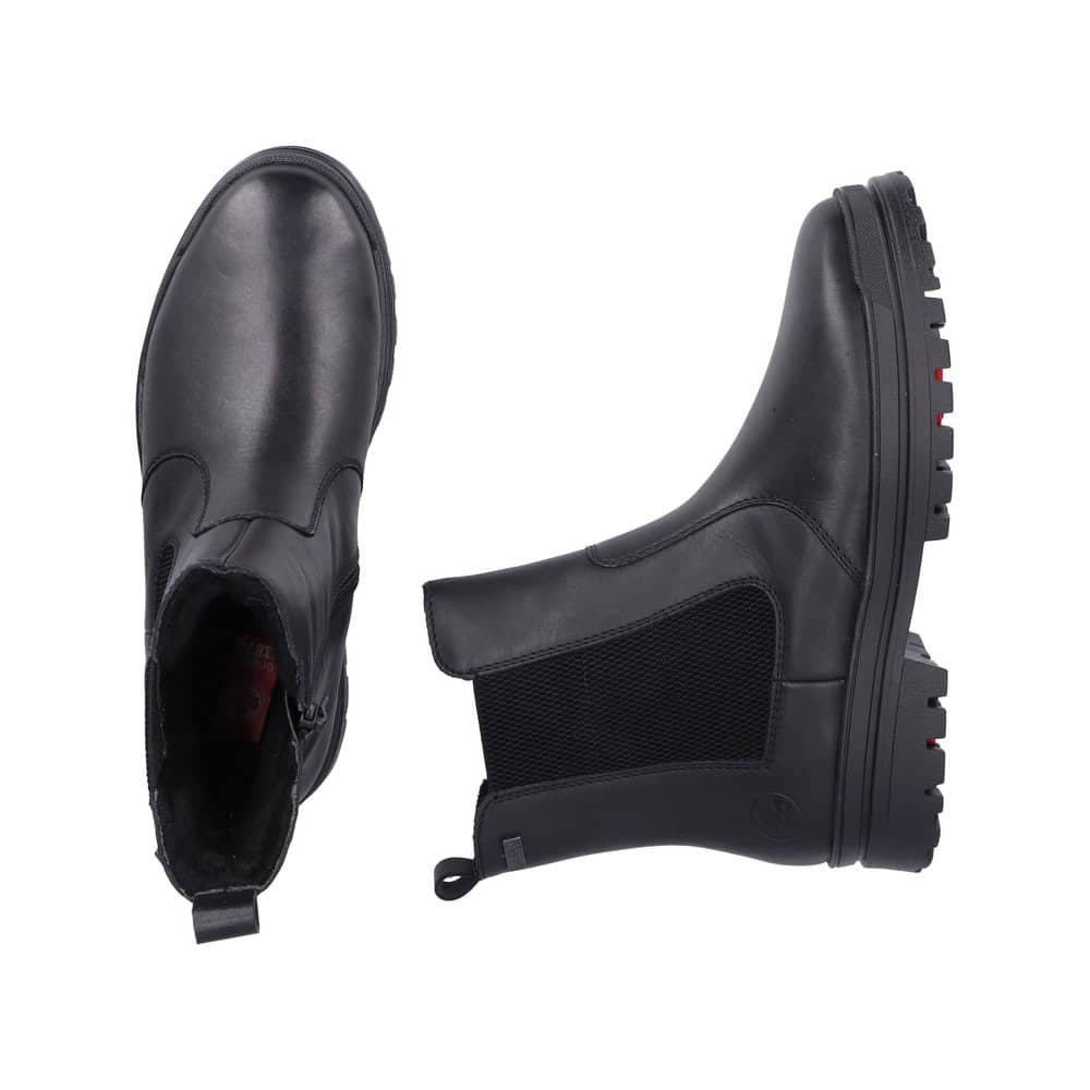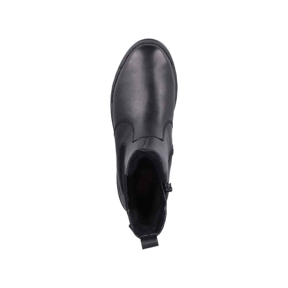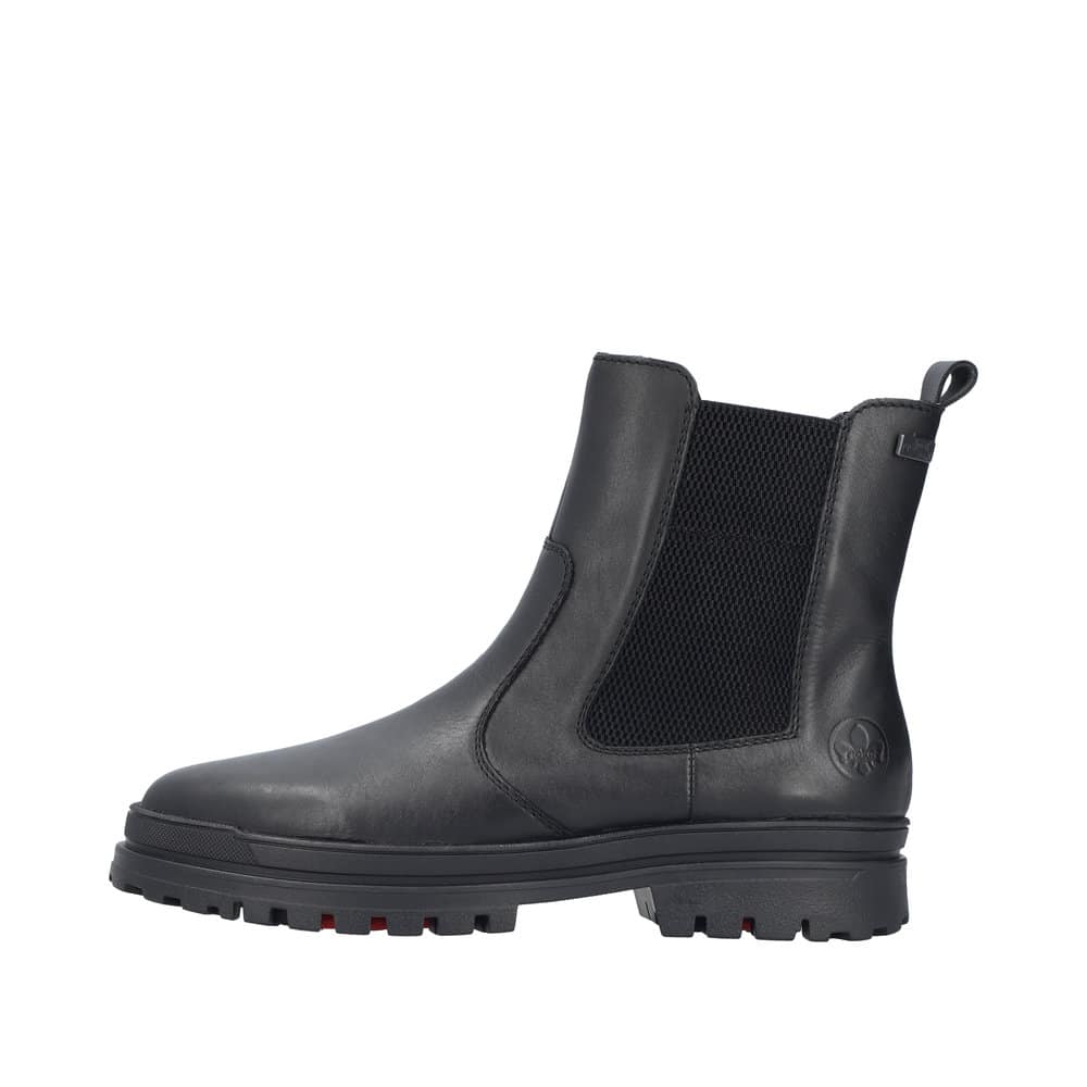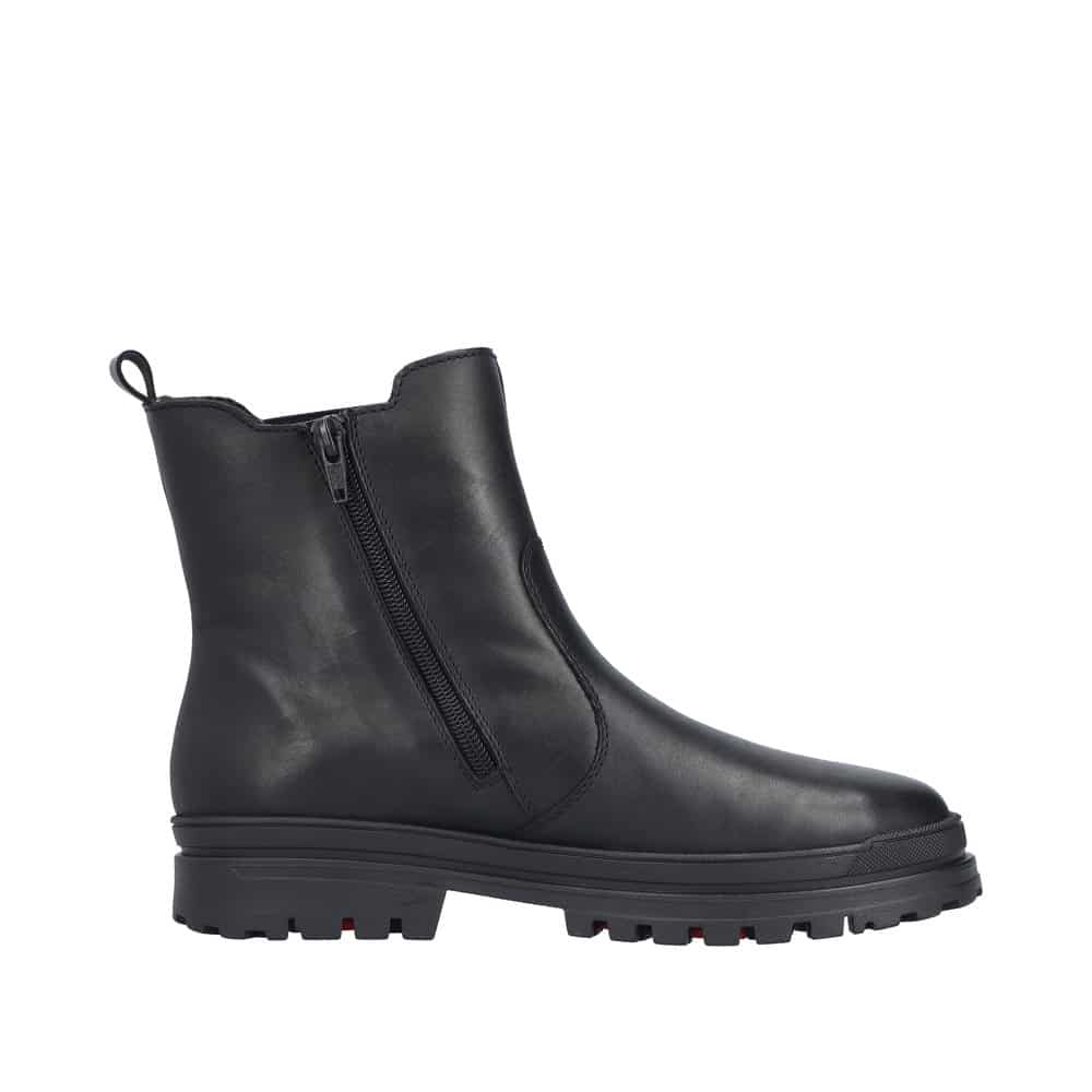 Rieker støvle til dame i sort. Elegant vinterstøvle med fokus på både komfort og funktion. Støvlen har en skindoverdel samt elastik og en praktisk lynlås, som gør den nem at tage af og på. Indvendigt er den udstyret med en varm foring og en blød sål, der giver en behagelig komfort hele dagen. Det smarte Anti-slip system med foldbare pigge øger skridsikkerheden og giver stabilitet, mens Rieker-Tex gør støvle kraftig vandafvisende. Mens den mønstrede ydersål giver øget stødabsorbering.