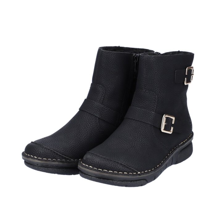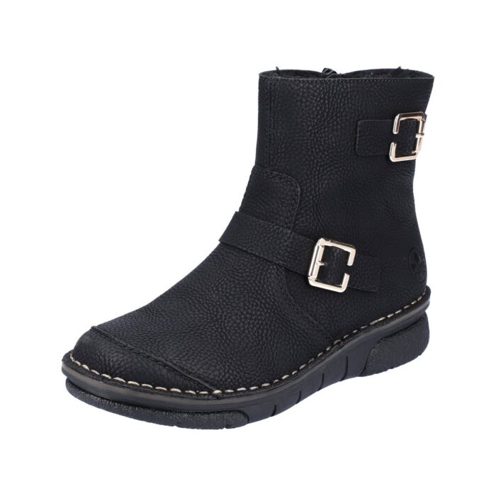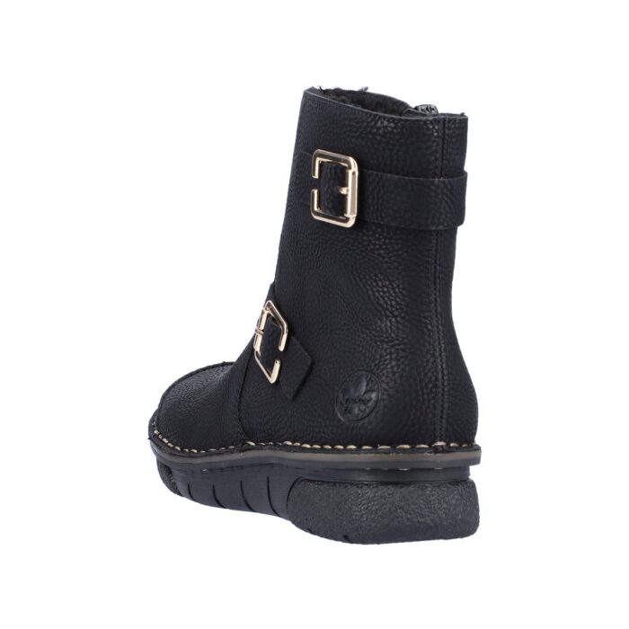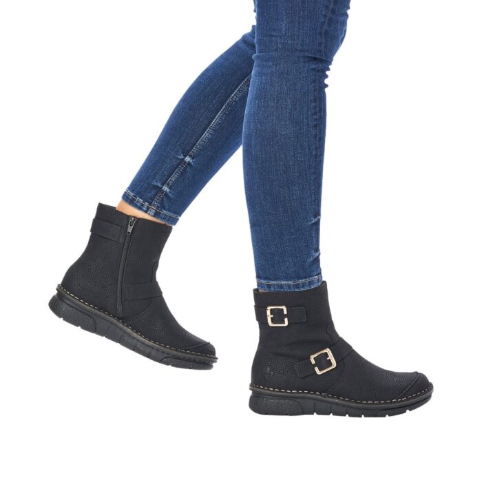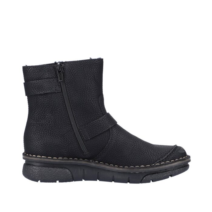 Rieker Støvle i Sort til Dame. Dejlig let og lækker lun Rieker støvle. Modellen har et moderne look, samt flotte detaljer. Støvlen har en lynlås på indersiden, som gør det let at komme i/af støvlen.