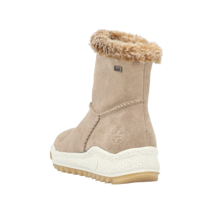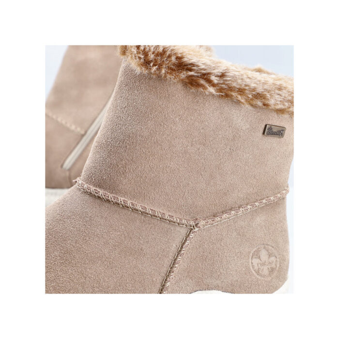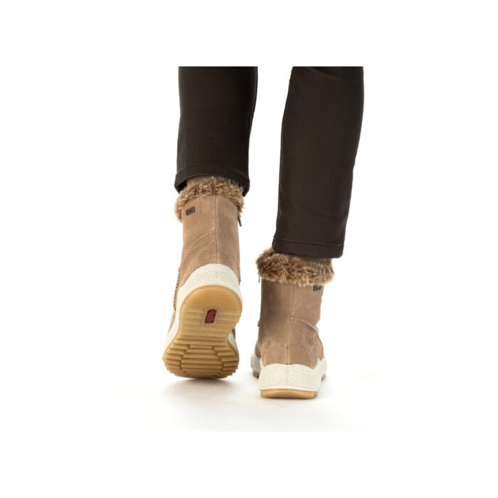 Rieker støvle til dame i brun. Forkæl dig selv med denne fantastiske damestøvle, hvor ruskindsoverdelen er luksuriøst foret med 100% ren uld og udstyret med RiekerTex for at holde vandet ude. Den ekstra kraftige sål forbedrer din stabilitet på glatte overflader, samtidig med at den stødabsorberende sål øger komforten for dine fødder. Med en praktisk lynlås på siden er det en leg at tage støvlen af og på.