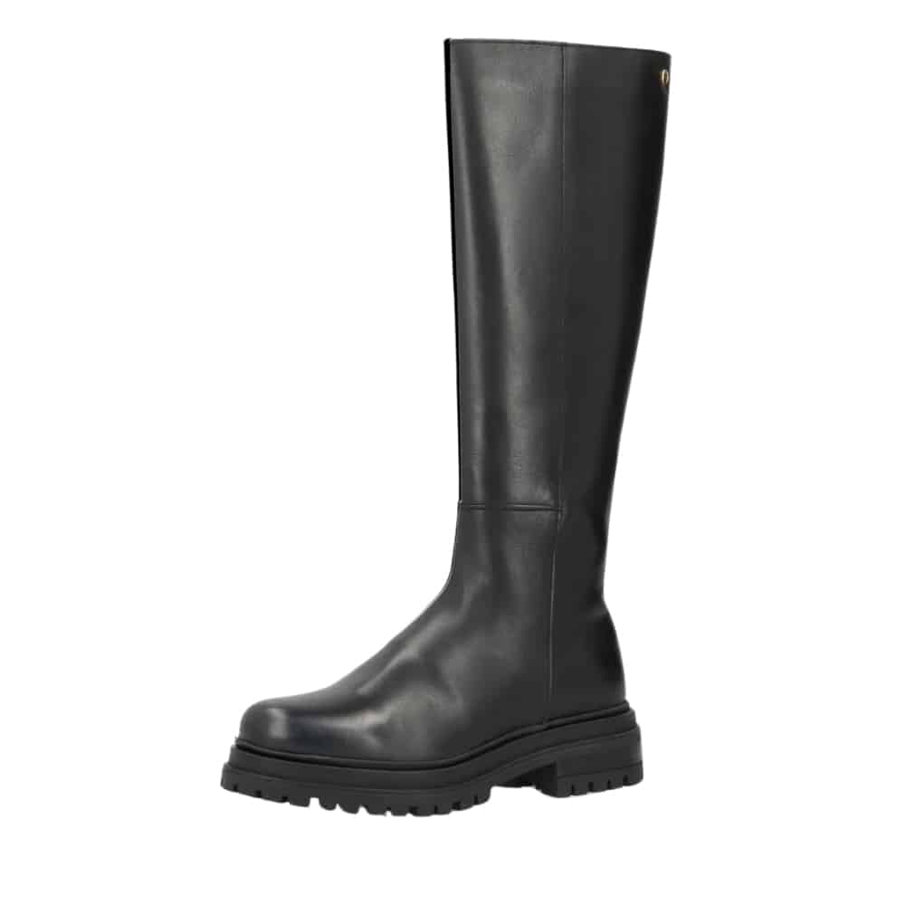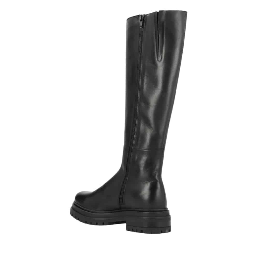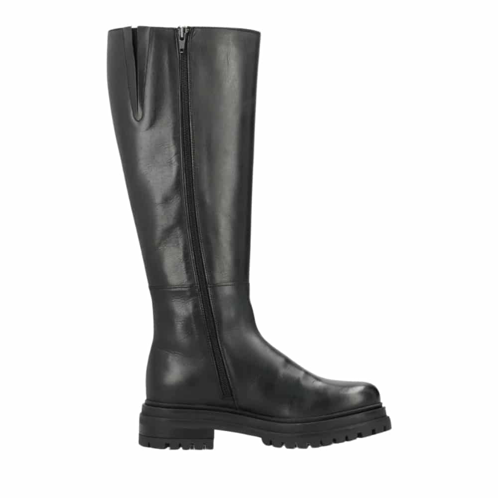 Shoedesign Copenhagen Everest lang støvle til dame i sort glatskind med lynlås og elastik samt chunky ydersål
