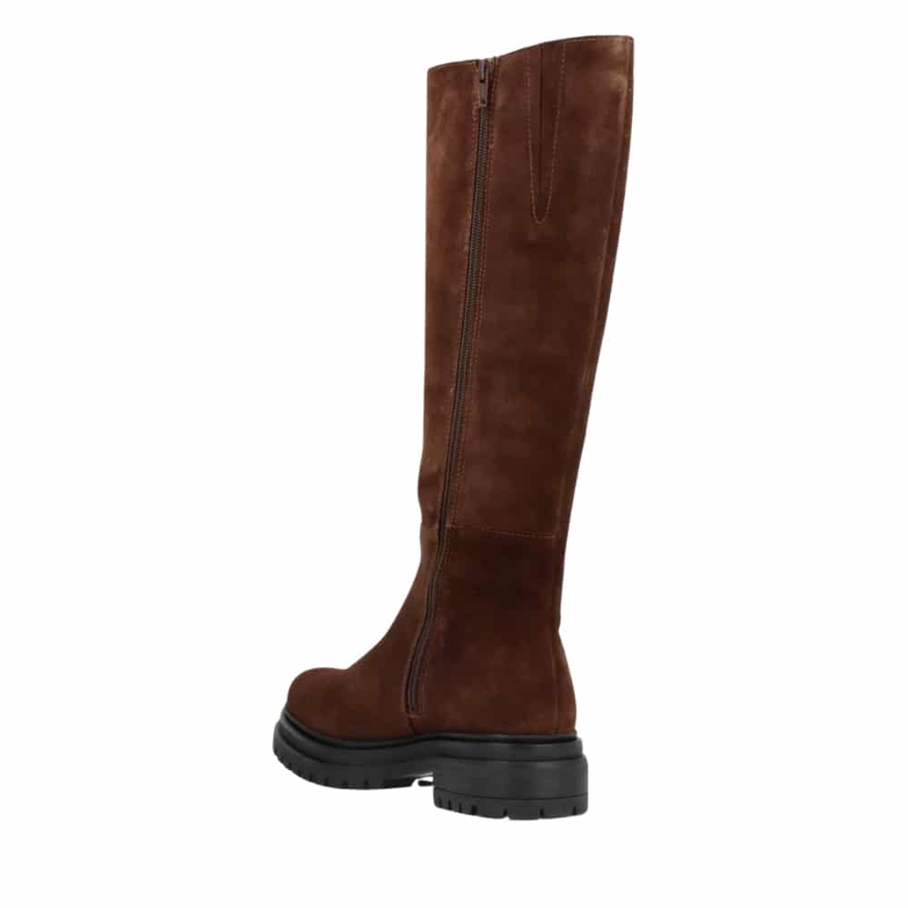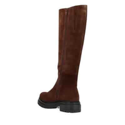Shoedesign Copenhagen Everest S lang støvle til dame i mørkebrunt ruskind med lynlås og elastik samt chunky ydersål