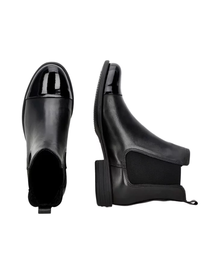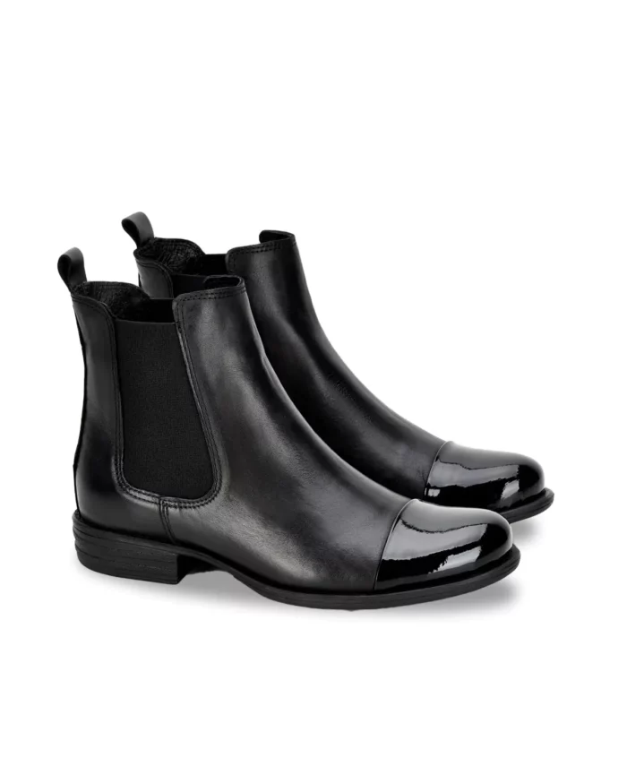 Shoedesign Copenhagen Firenze Støvle i sort til dame. Super smart kvalitetsstøvle fra Shoedesign Copenhagen i 100% skind, der giver dine fødder en blød og god pasform. Støvlen har elastik i begge sider samt en flot tå i lak, der giver den et moderne look. Støvlen har en fleksibel og blød bund, der giver god komfort og støtte, så du kan holde til at have den på hele dagen.