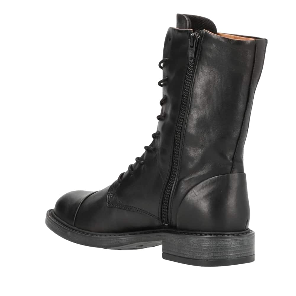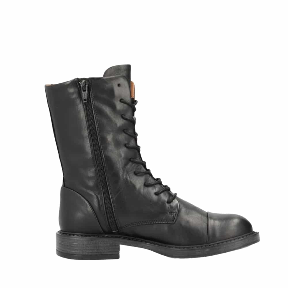 Shoedesign Copenhagen Jennifer støvle til dame i sort. Moderne støvle i sort skind med et klassisk design, der passer til mange anledninger. Det mellemlange skaft og den runde snude skaber et enkelt og tidløst look. Med snørebånd foran og lynlås på indersiden får du både fleksibilitet og nem adgang. Indvendigt giver den bløde indersål i skind en behagelig komfort, så du kan bruge støvlen hele dagen. Hælen på 3 cm giver et diskret løft, mens den solide ydersål med mønster øger støtte og skridsikkerhed.