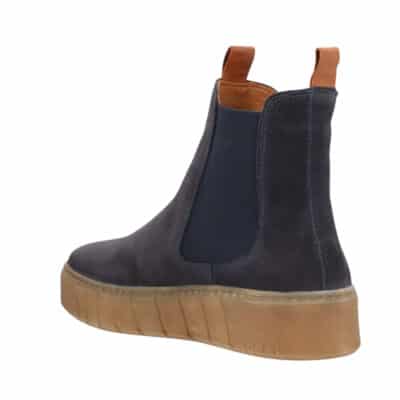 Shoedesign Copenhagen Mooved S støvle til dame i mørkeblå. Med sit klassiske design i mørkeblåt ruskind er denne chelseastøvle både tidløs og komfortabel. De praktiske elastikker i siderne gør den let at tage af og på, og indvendigt sørger en blød skindsål for optimal komfort. Kilehælen på ca. 4 cm giver et feminint løft, mens den robuste gummisål med mønster giver øget støtte og skridsikkerhed.