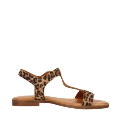 Shoedesign Copenhagen Nora S sandal til dame i leopard. Elegant sandal med et moderne leopardmønster der kombinerer stil og komfort. Overdelen er fremstillet i blødt ruskind, mens indersiden har glat skindkvalitet for en luksuriøs følelse. Den justerbare ankelrem med en gylden spænde giver en skræddersyet pasform og gør sandalen nem at tage af og på. Den bløde sål sikrer maksimal komfort, mens den mønstrede, fleksible ydersål giver godt fodfæste og stabilitet.