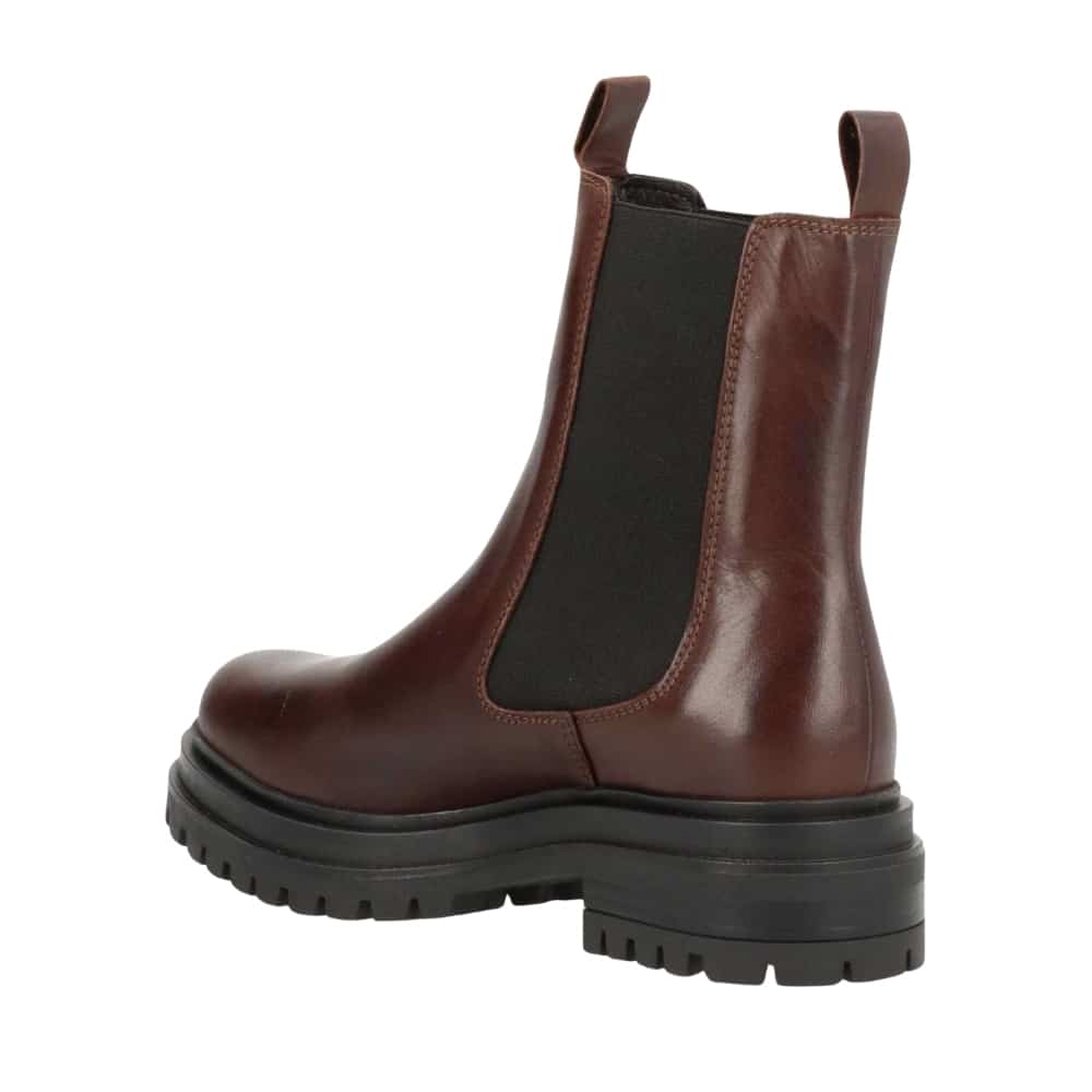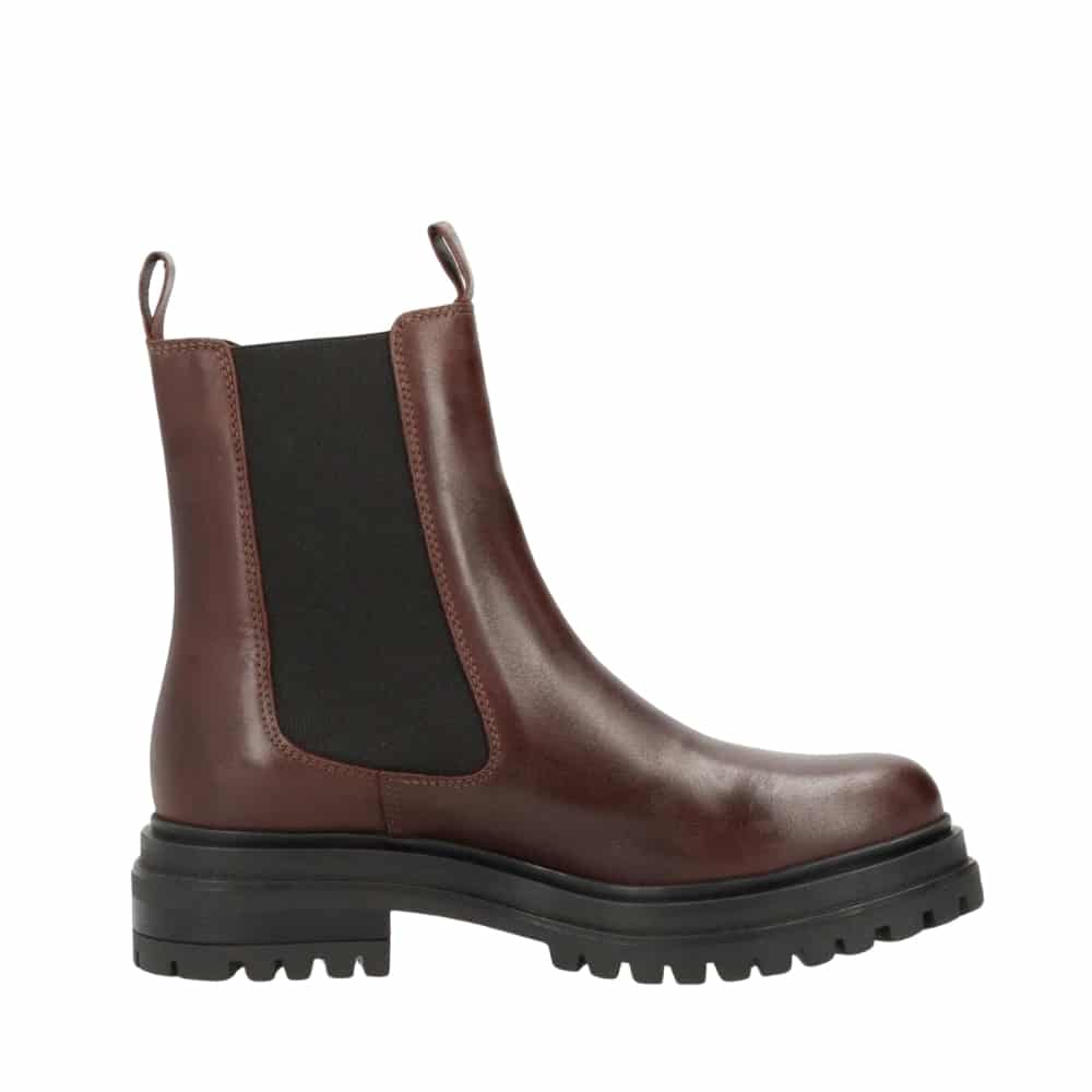 Shoedesign Copenhagen Vista Sea Støvle til dame i mørkebrun. Klassisk og stilren chelseastøvle i skind, designet med fokus på både komfort og funktionalitet. Elastikken i siderne gør den nem at tage på, og den chunky hæl giver stabilitet og behagelig støtte. Indvendigt er støvlen udstyret med en blød sål og en varm foring, som giver god komfort. Den mønstrede ydersål bidrager til stødabsorbering og øget skridsikkerhed på forskellige underlag.
