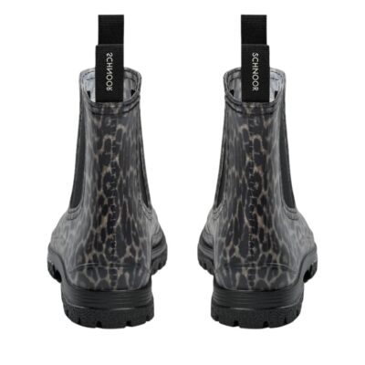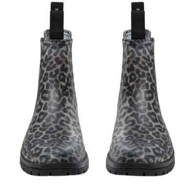 Sofie Schnoor gummistøvle til dame i leopard. Trendy gummistøvle i leopard, der kombinerer mode og funktionalitet. Elastik i siderne gør støvlen let at tage af og på og sikrer en behagelig pasform. Den slidstærke ydersål med mønster giver bedre greb og stabilitet, hvilket gør støvlen velegnet til både regnfulde dage i byen og ture i naturen.