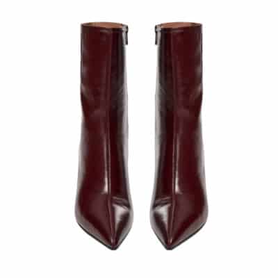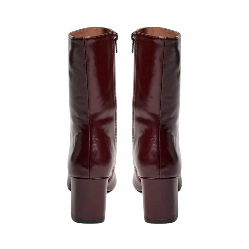 Sofie Schnoor støvle til dame i bordeaux. Denne elegante støvle til dame er lavet i bordeaux skind med en blank finish og fine, stilrene detaljer, der skaber et moderne udtryk. En funktionel lynlås på indersiden gør den let at tage af og på. Indvendigt sørger glatskind og en blød indersål for høj komfort hele dagen. Den spidse snude kombineret med en blokhæl på cirka 7 cm giver et flot og elegant løft.