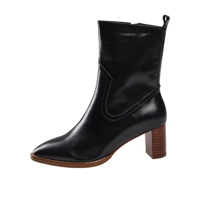 Sofie Schnoor Støvle i Sort til Dame. Super lækker skind støvle, i et fedt design. Modellen har et moderne og tidsløst design. Modellen har en overdel lavet i høj skind kvalitet. hælhøjden er ca. 6 cm.