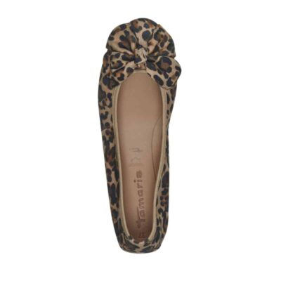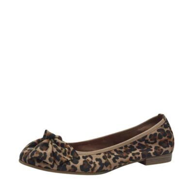 Tamaris ballerinasko til dame i leopard. Trendy ballerinasko i et smukt leopardprint med eksklusive skinddetaljer. Den dekorative sløjfe foran tilføjer et elegant og feminint touch. Med en blød indersål, der er udstyret med Touch-It teknologi, får du en sko, der former sig efter foden og sikrer optimal komfort. Den fleksible ydersål og diskrete hæl giver en let og stilfuld følelse hele dagen.
