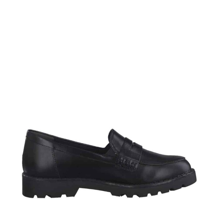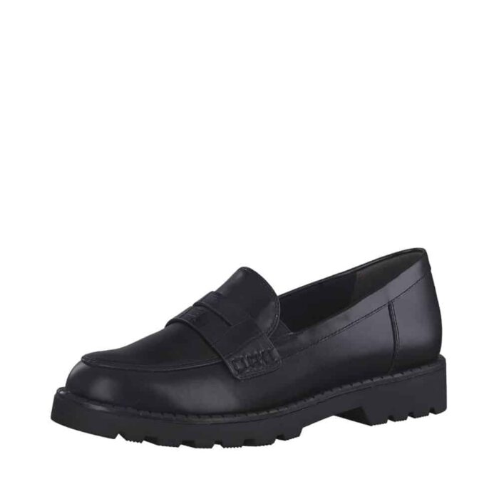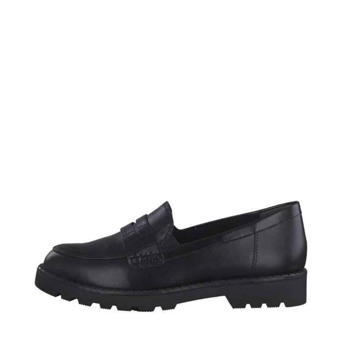 Tamaris loafers til dame i sort. Super let loafers med en lækker skindoverdel. Modellen har en super god pasform, og et moderne og tidsløst design med flotte detaljer foran.
