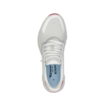 Tamaris Nowana slip on sneakers til dame i flot kombination af hvid og lyserød. Tamaris Nowana slip-on sneakers er skabt til bevægelse. Den elastiske snøring sikrer en hurtig og behagelig pasform, mens den stabile hælkappe giver ekstra støtte så du kan tage skoen på uden at bukke dig ned eller brug af skohorn. Overdelen i mesh giver optimal ventilation, og OrthoLite®-indersålen sørger for, at dine fødder forbliver friske, selv efter en lang dag. Den bølgede ydersål skaber et let og fjedrende gangmønster, samtidig med at den tilføjer en moderne detalje til designet. Med sin kombination af funktion og stil er denne sneakers perfekt til alt fra afslappede gåture til aktive dage. De moderigtige farver gør det nemt at matche skoene med både sporty og feminine outfits.