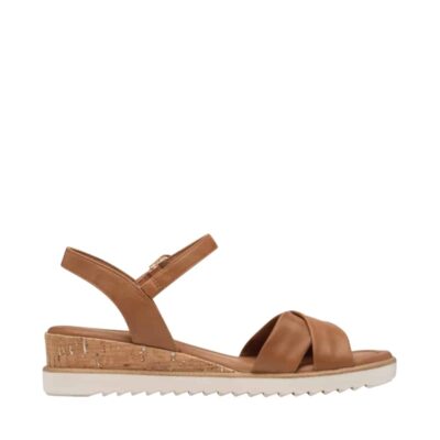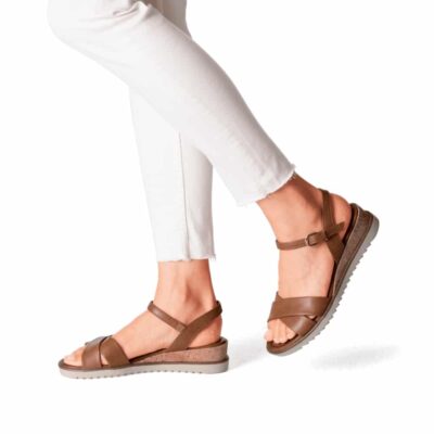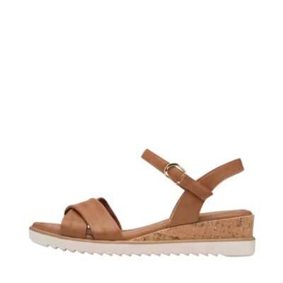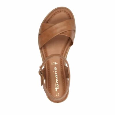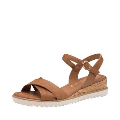 Tamaris sandal til dame i brun. Stilfuld damesandal i en brun farve med et klassisk og moderne look. Den har en elegant krydsrem foran og en justerbar ankelrem, der giver en sikker og behagelig pasform. Den bløde indersål med Touch-It teknologi tilpasser sig foden og sikrer optimal komfort. Med en ca. 4,5 cm kilehæl får du et flot løft, mens den skridsikre ydersål giver ekstra stabilitet.