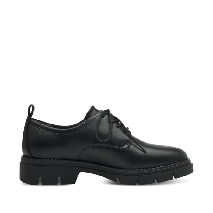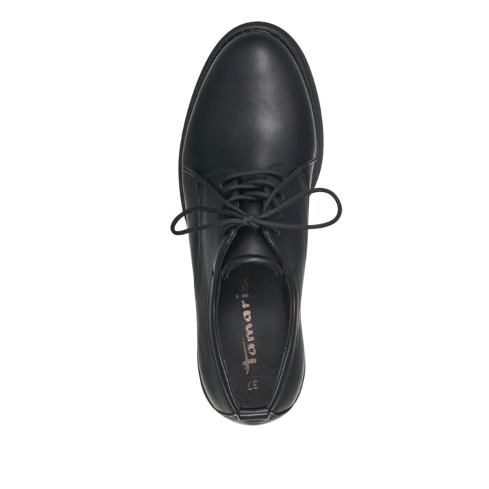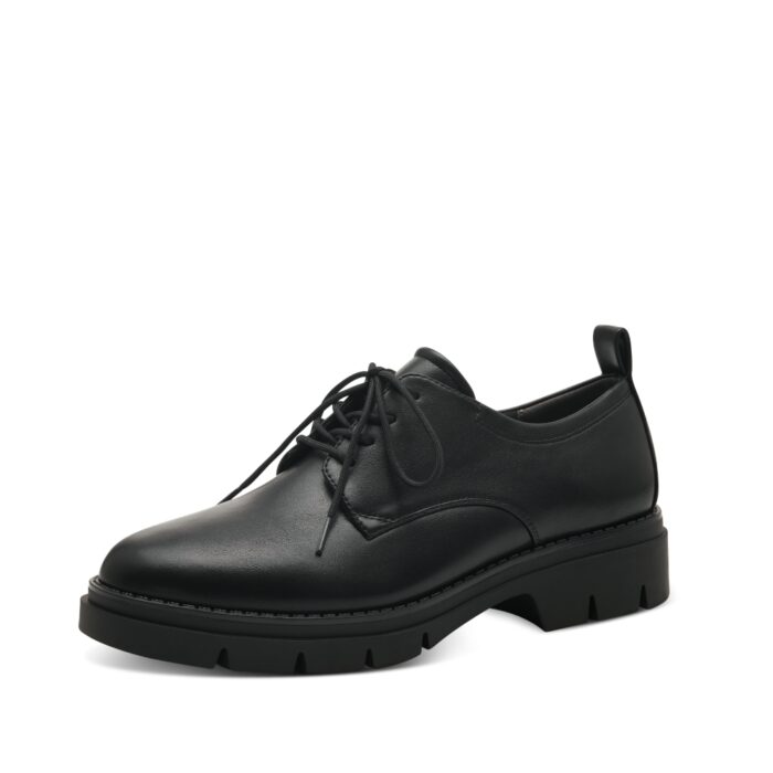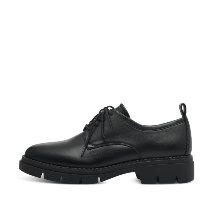 Disse Tamaris-sko med snørebånd er designet specielt til damer og kommer i en flot sort farve. Skoene har en lille chunky sål, der giver en ekstra stilfuld detalje til udseendet, samtidig med at den behagelige hælhøjde på cirka 4 cm tilbyder en subtil hæleffekt.