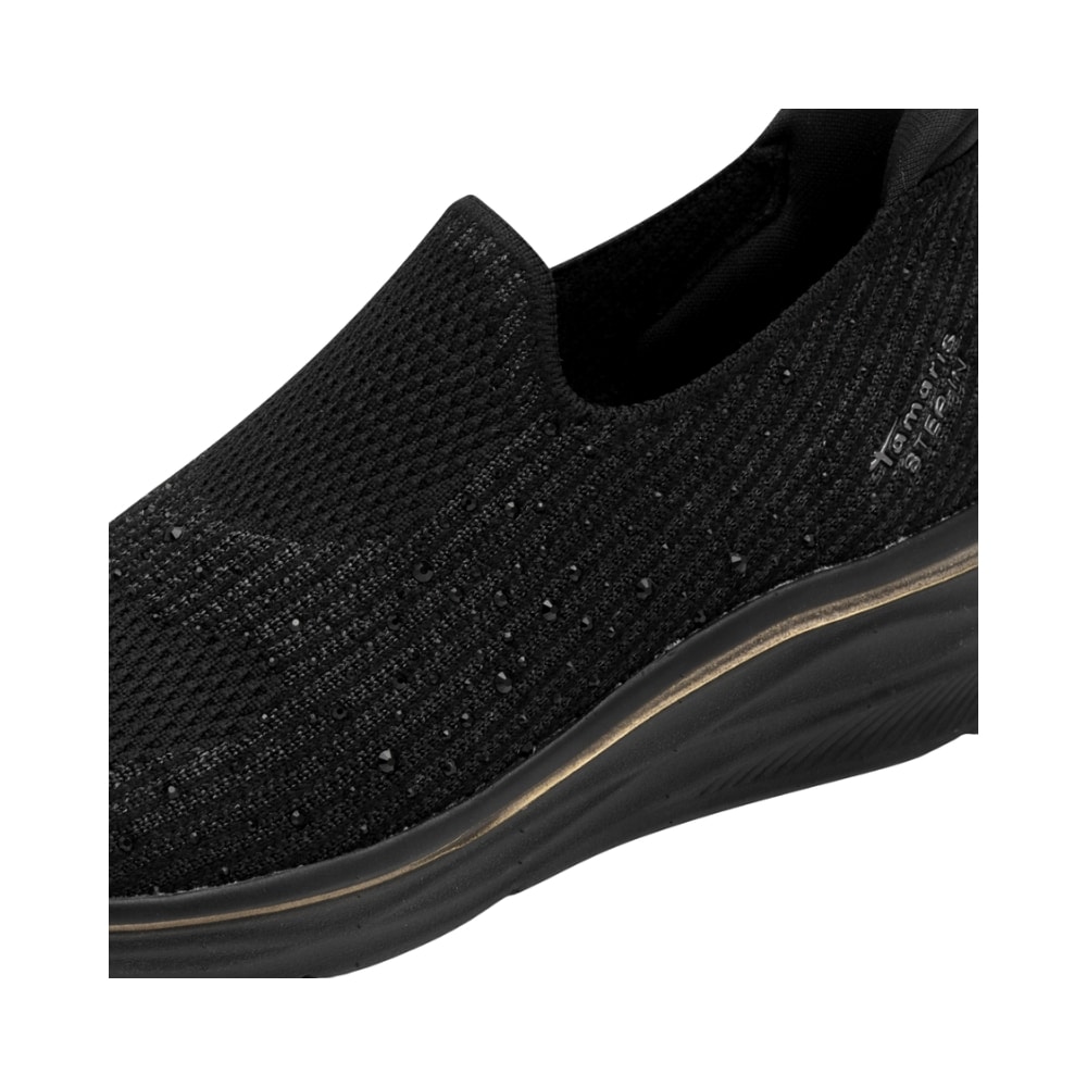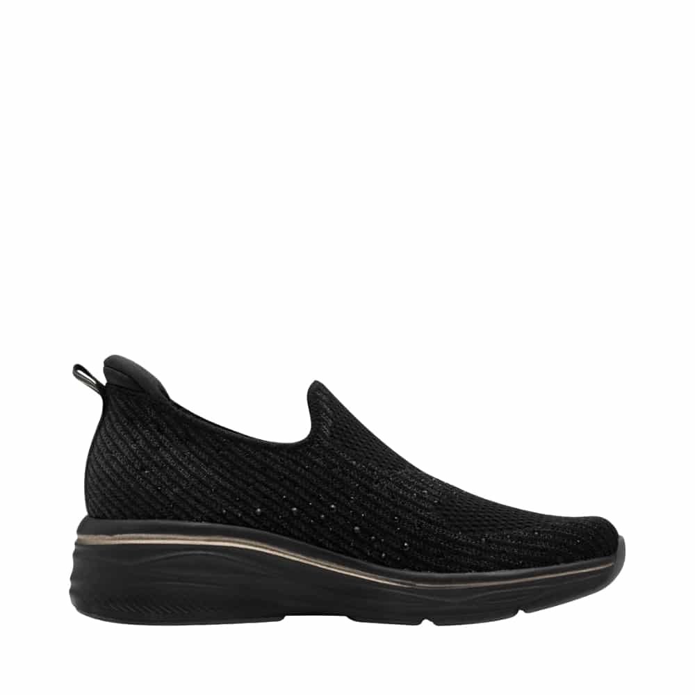 Tamaris Step-In sko til dame i sort, med sorte nitter, fast hælkappe og en hælhøjde på 5 cm
