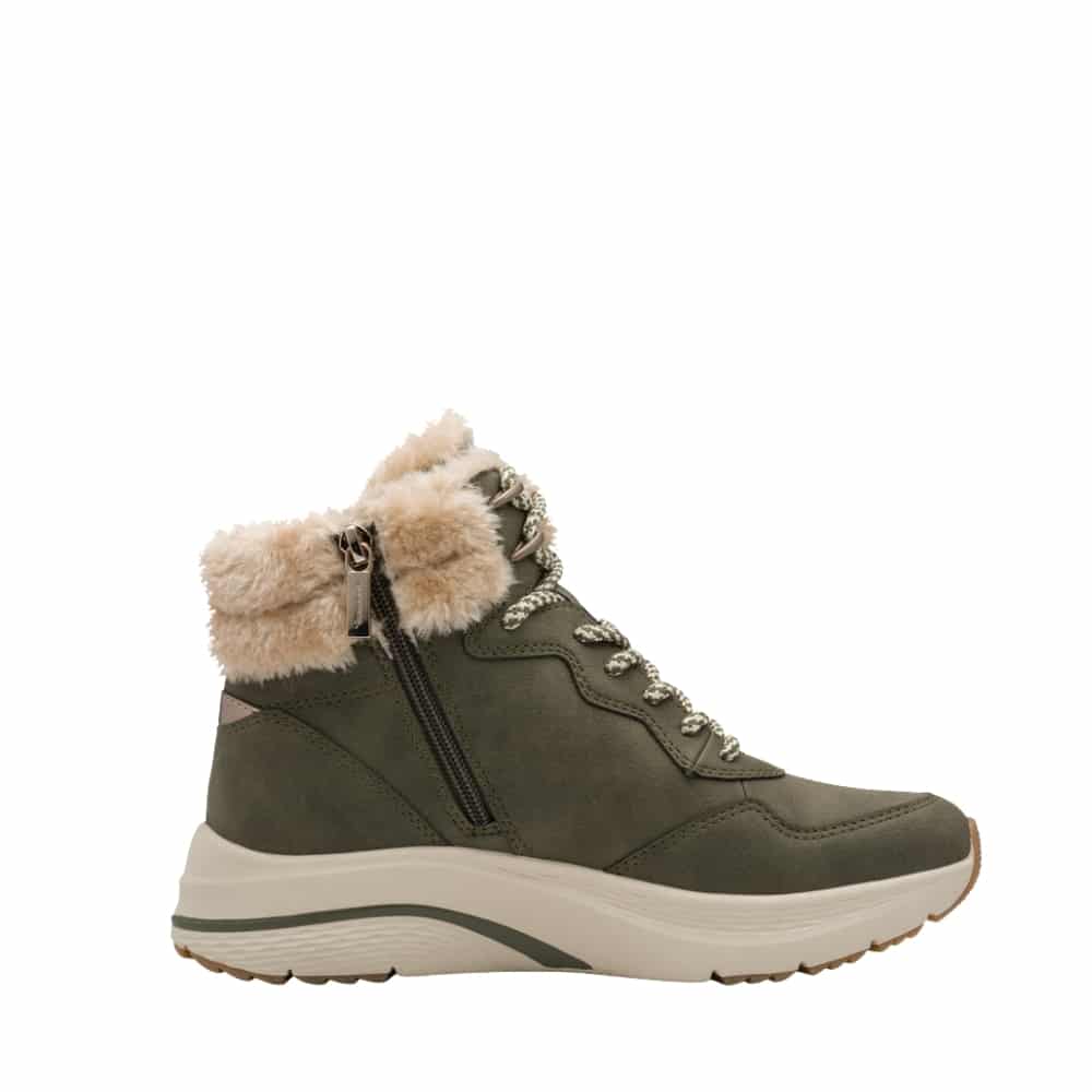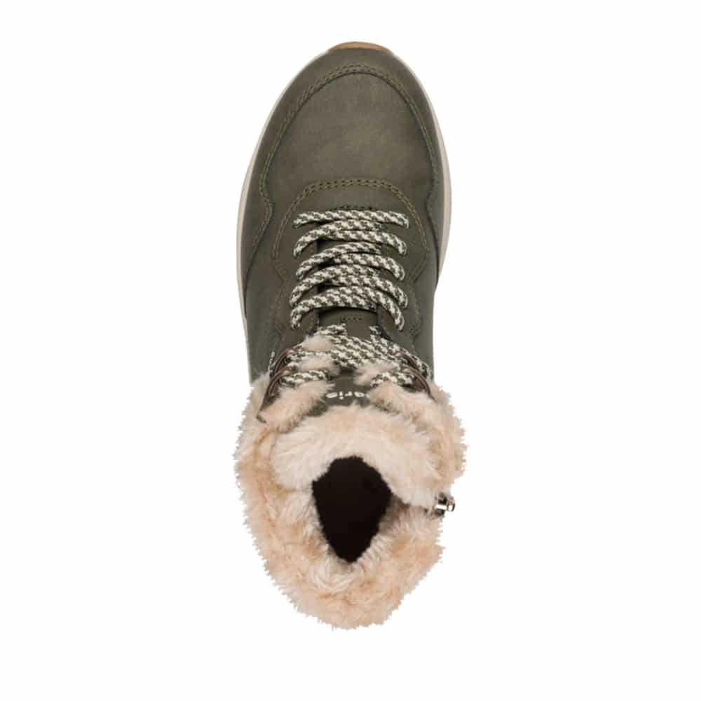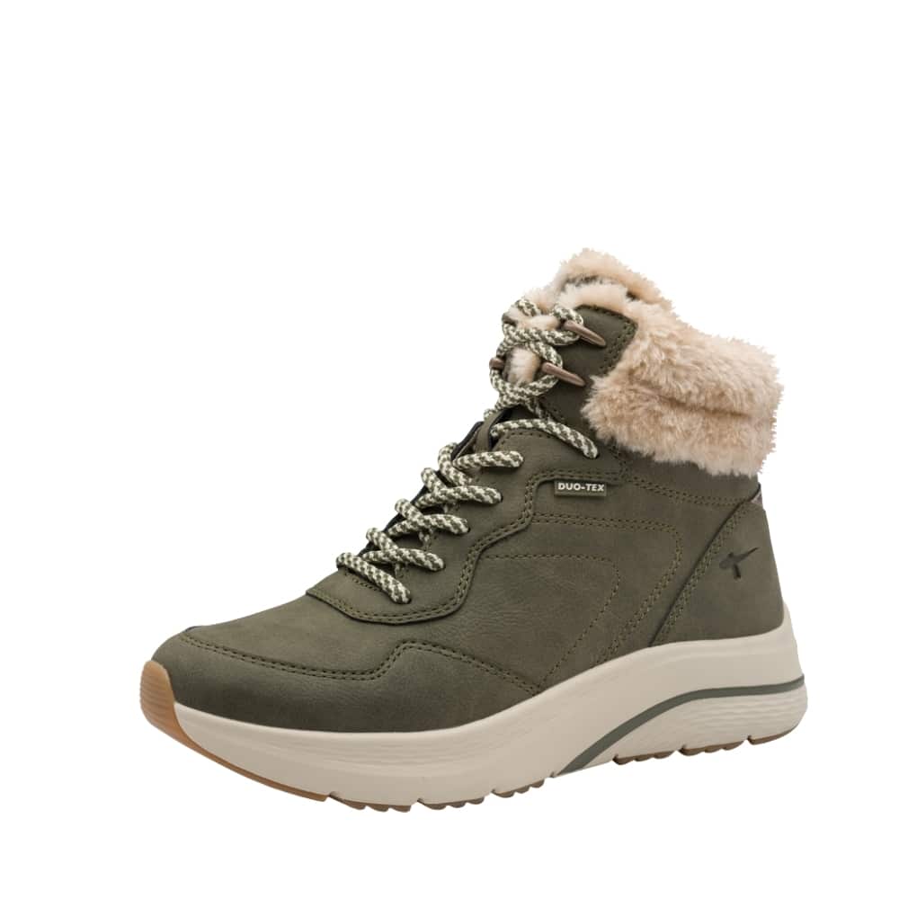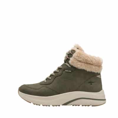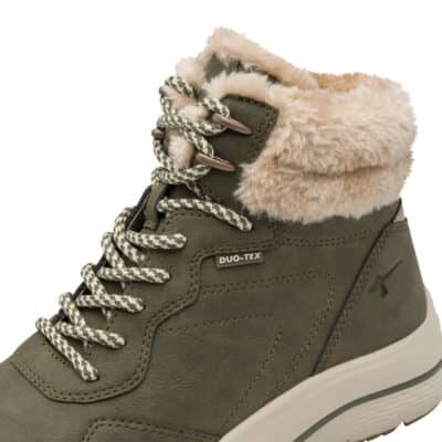 Tamaris støvle til dame i grøn med snørebånd og lynlås samt thermo-indersål og DUO-Tex