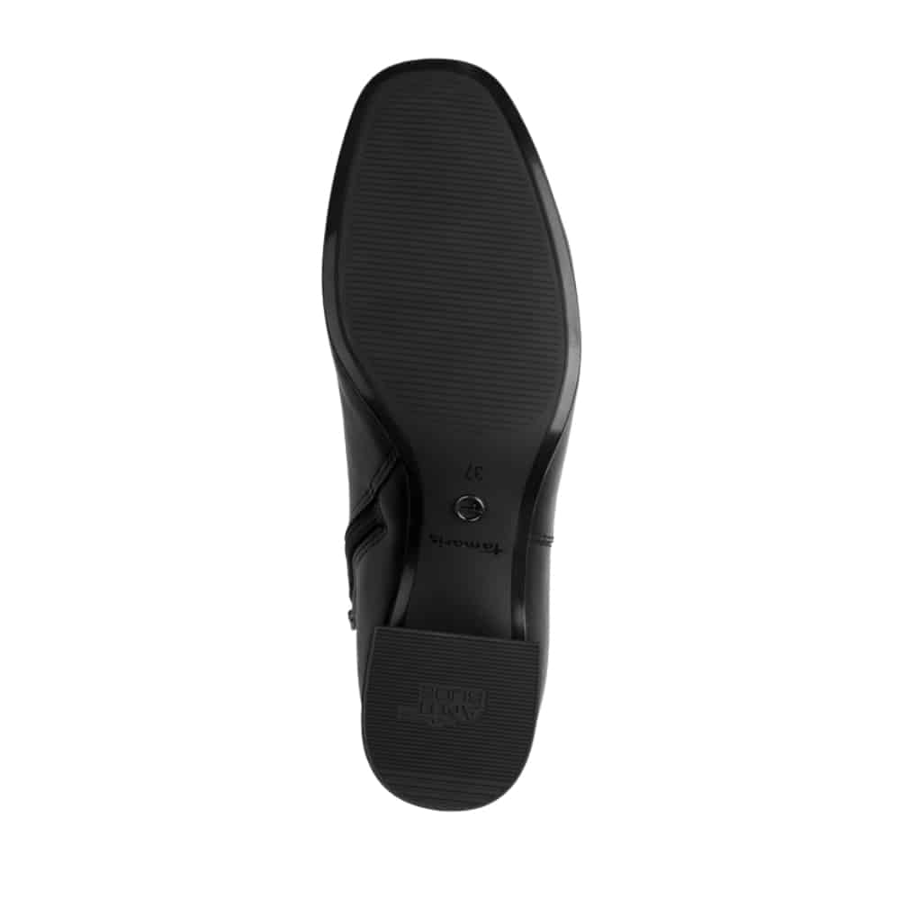 Tamaris støvle til dame i sort. Denne sorte støvlet kombinerer tidløs elegance med høj komfort. Skindoverdelen giver et stilrent look, mens lynlåsen på indersiden og elastikken gør modellen praktisk og nem at bruge. Indvendigt sikrer en blød indersål optimal komfort, så du kan have støvlen på hele dagen. Den ca. 6 cm høje blokhæl tilfører et feminint løft, og med Anti-Slide og Anti-Schock teknologierne får du både stabilitet og bedre skridsikkerhed.