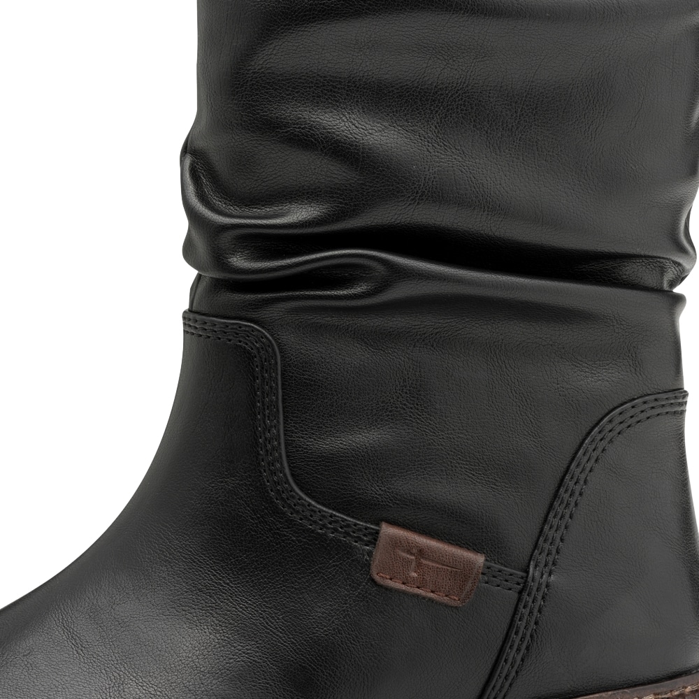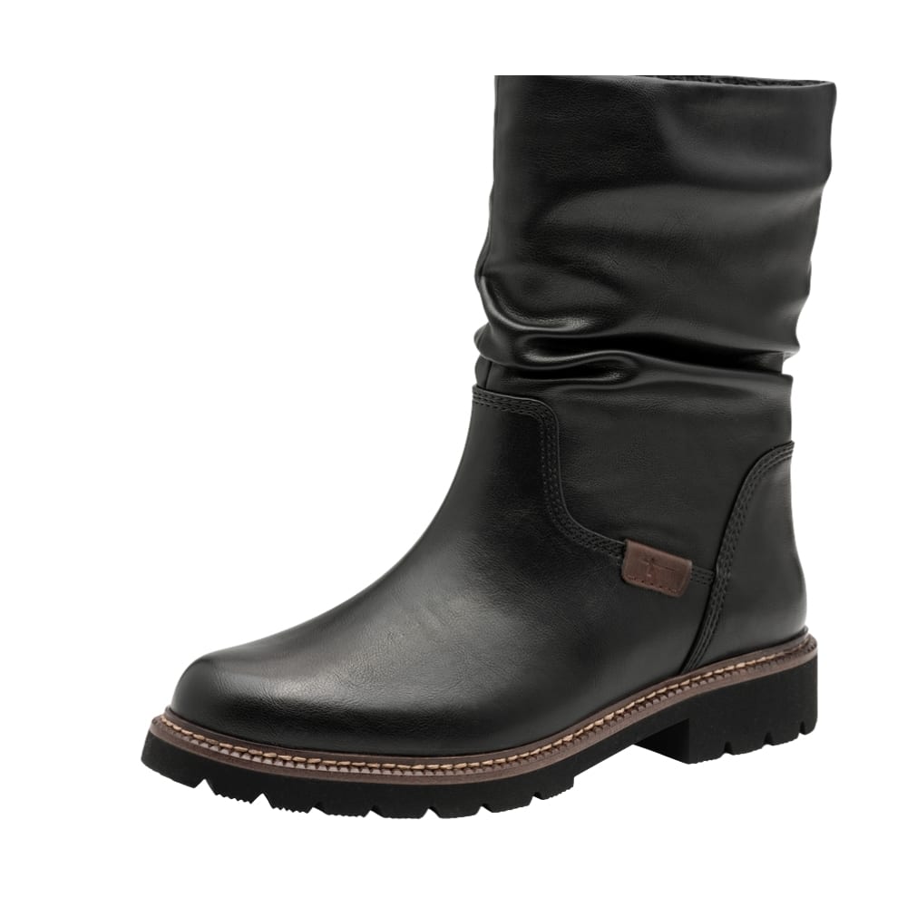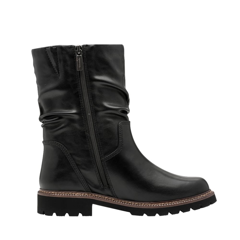Tamaris støvle til dame i sort med lynlås og rynket detalje samt let foring