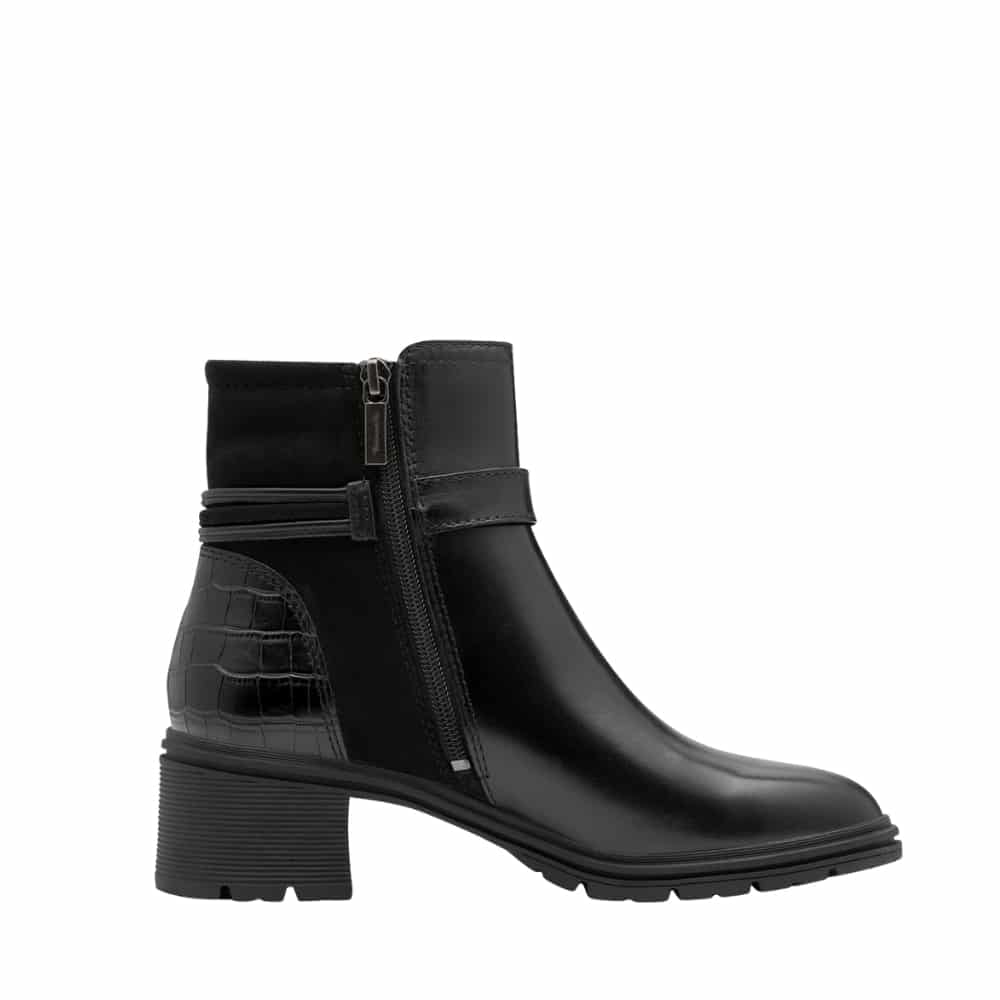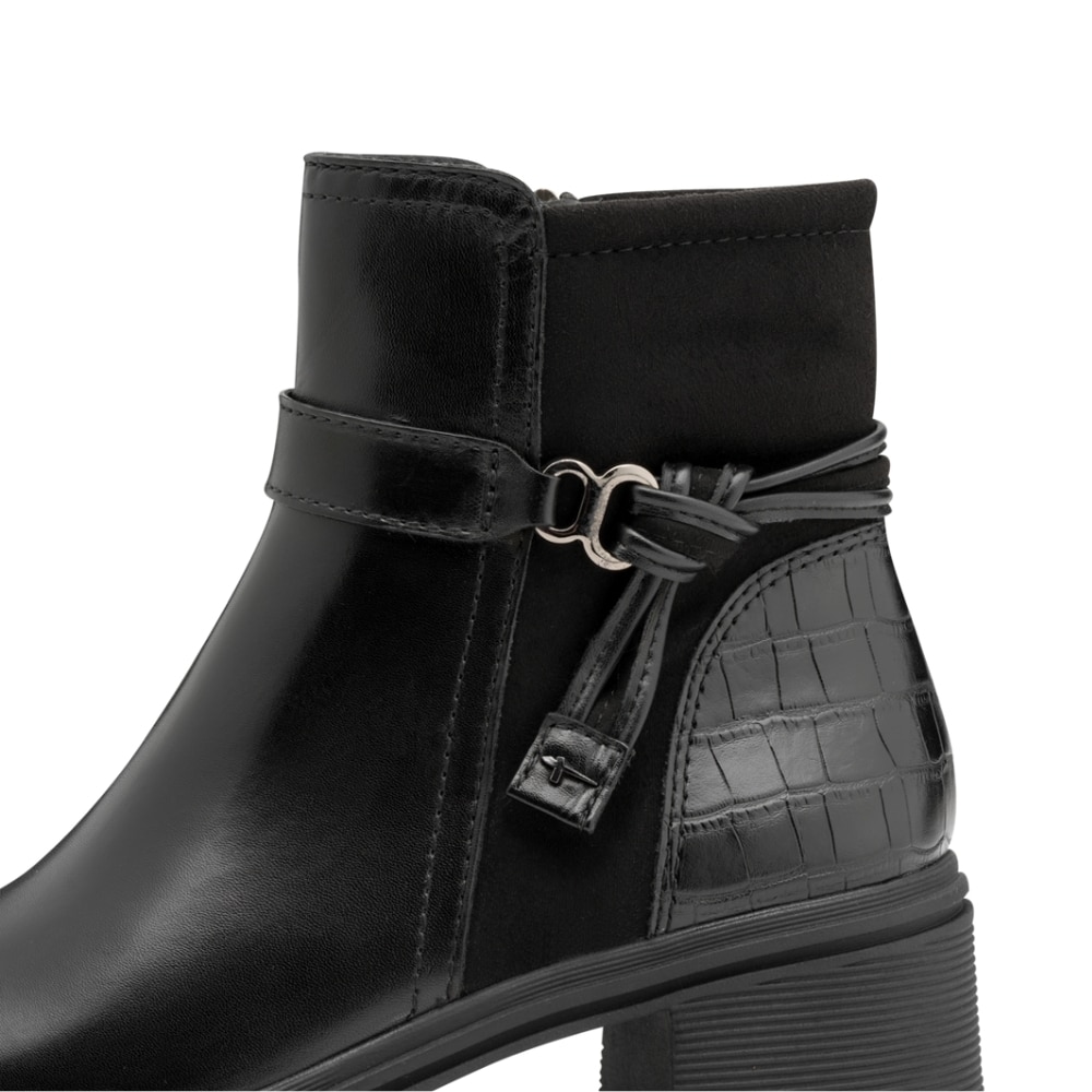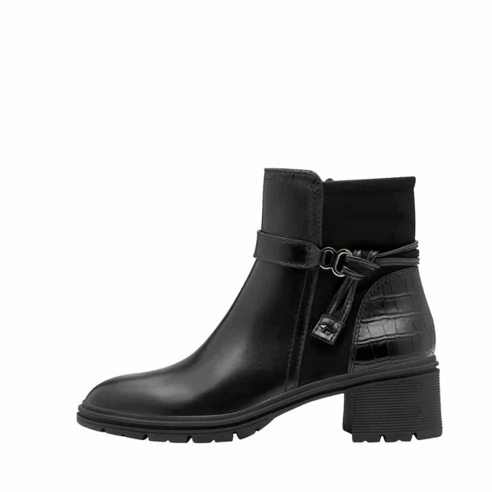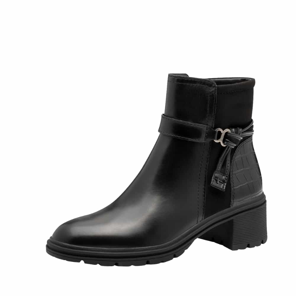 Tamaris støvle til dame i sort. Elegant støvle med skindoverdel og fine detaljer. Modellen har en funktionel lynlås, der gør den enkel at bruge i hverdagen. Indvendigt har støvlen en let foring og en blød Touch-it sål, som tilpasser sig fodens form, for høj komfort hele dagen. Blokhælen på 6 cm giver et feminint løft, og ydersålen med mønster øger skridsikkerheden.