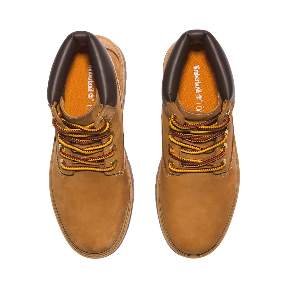 Timberland Stone Street støvle til dame i camel. Trendy camelfarvet snørestøvle i vandtæt læder, der kombinerer komfort, stil og funktion. Støvlen har en blød polstret krave og justerbare snørebånd foran, som gør den nem at tage af og på. Indvendigt sørger en udtagelig Ortho-Lite® indersål for høj komfort og støtte gennem hele dagen. Den solide plateausål på ca. 5 cm giver et flot løft, mens den robuste gummiydersål giver godt greb og støtte, uanset hvor du går.