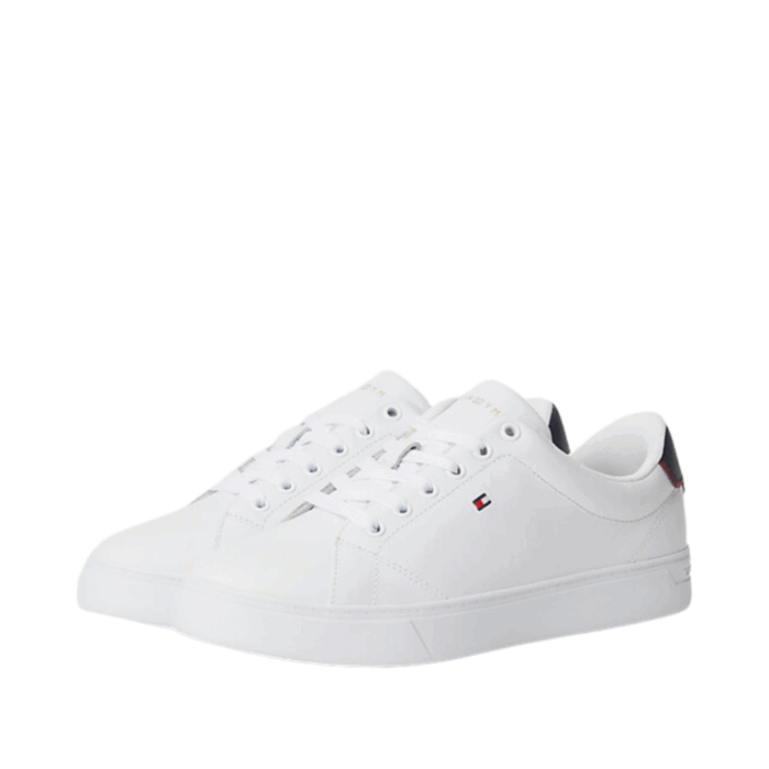 Tommy Hilfiger sneakers i hvid til dame FW0FW074270LG. Lækker sneakers fra Tommy Hilfiger i en fin hvid farve med blå detaljer bagpå. Modellen har en dejlig blød skindoverflade, samt udtagelige såler. Modellen har justerbar snøre som gør den nem at tilpasse din fod.