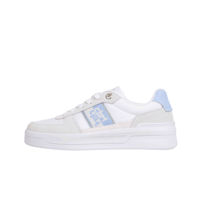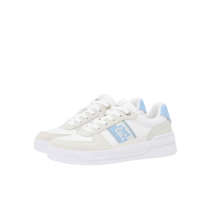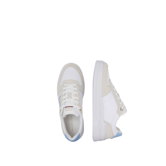 Tommy Hilfiger Sneakers i Kombi til Dame. Lækker sneakers fra Tommy Hilfiger i et feminint design med logo detalje på siden. Modellen har snøre, så du selv kan justere den til din fod. Modellen har dejlige bløde såler, hvilket giver den en dejlig pasform. Modellen er i en smuk hvid/blå/beige farvekombination og er i et populært basket look.