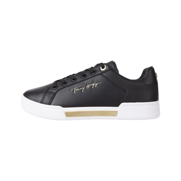 Tommy Hilfiger Sneakers i Sort til Dame. Lækker skind Sneakers i super høj kvalitet. Modellen har mange flotte Tommy Hilfiger detaljer i guld, dejlig blød og høj skind kvalitet.