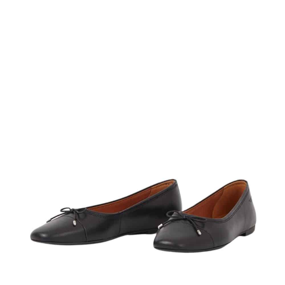 Vagabond Jolin ballerinasko i sort til dame. Elegant ballerinasko fra Vagabond med et moderne og tidløst udtryk, prydet af en delikat sløjfedetalje foran. Skoen er fremstillet i førsteklasses skind og tilbyder en fantastisk blød og fleksibel konstruktion, der sikrer både støtte og komfort til dine fødder, så du kan nyde at have dem på i lange perioder.